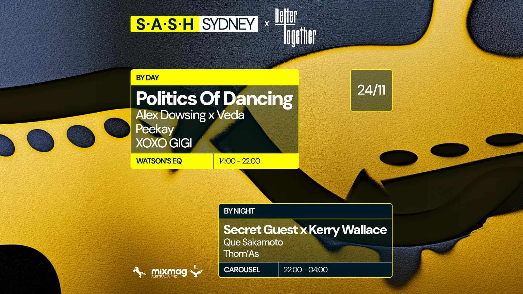 ★ S.A.S.H By Day & Night ★ Better Together ft. Politics Of Dancing ★ Secret Guest x Kerry Wallace ★ Sunday November 24th ★
