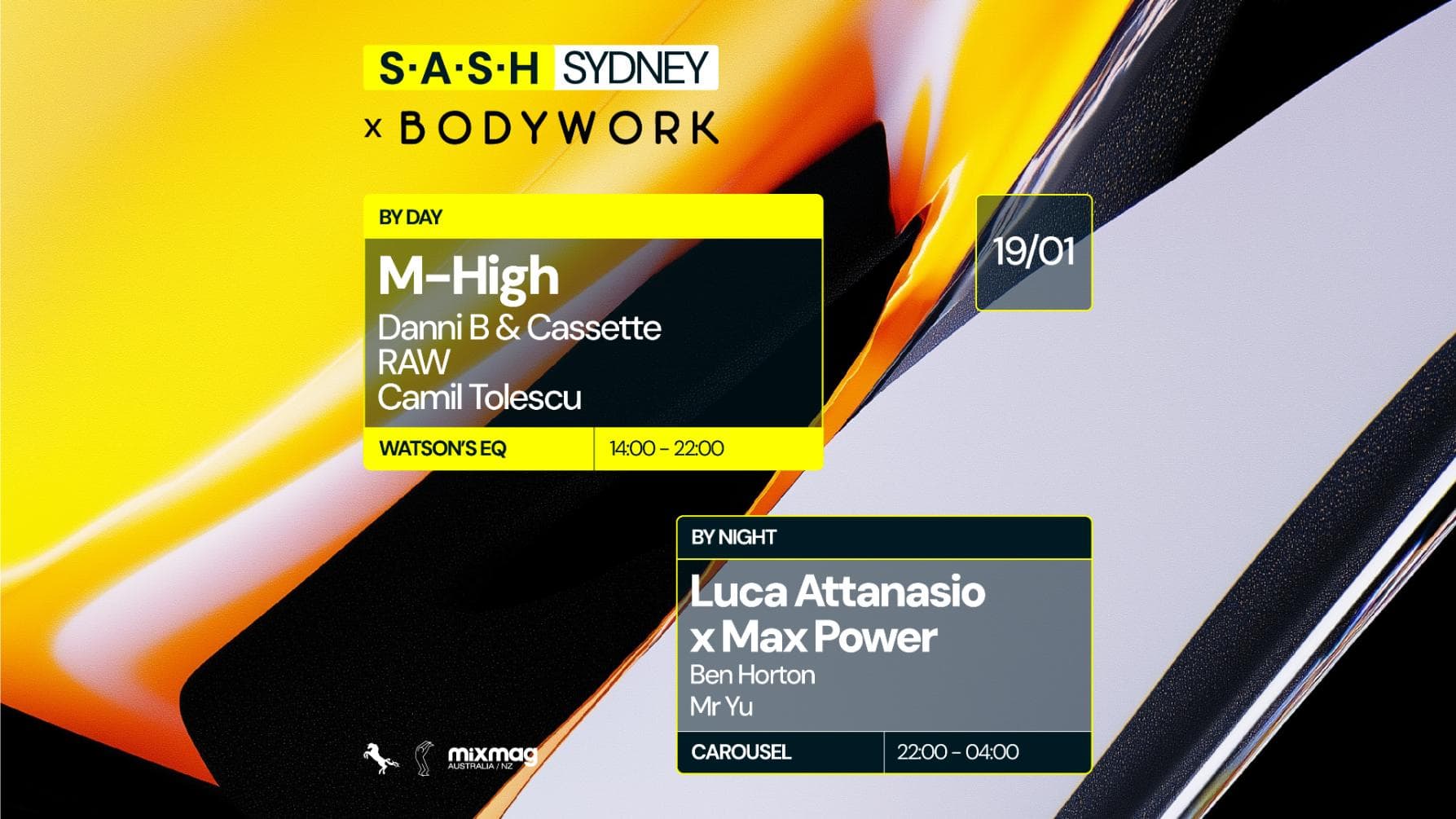 ★ S.A.S.H By Day & Night ★ Bodywork ft. M-High ★ Luca Attanasio x Max Power ★ Sunday January 19th ★