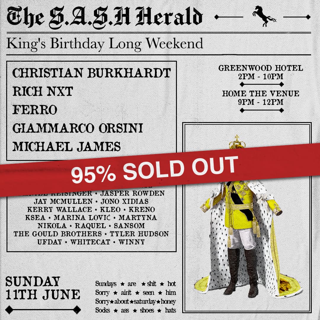 ★ S.A.S.H By Day & Night ★ King’s Birthday Long Weekend ★ Christian Burkhardt ★ Rich NxT ★ Ferro ★ Giammarco Orsini ★ Michael James ★