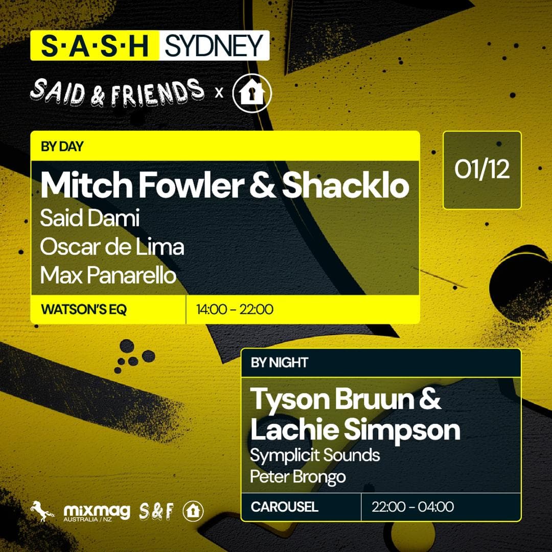 ★ S.A.S.H By Day & Night ★ Said & Friends x Refuge ft. Mitch Fowler & Shacklo ★ Tyson Bruun & Lachie Simpson ★ Sunday December 1st ★