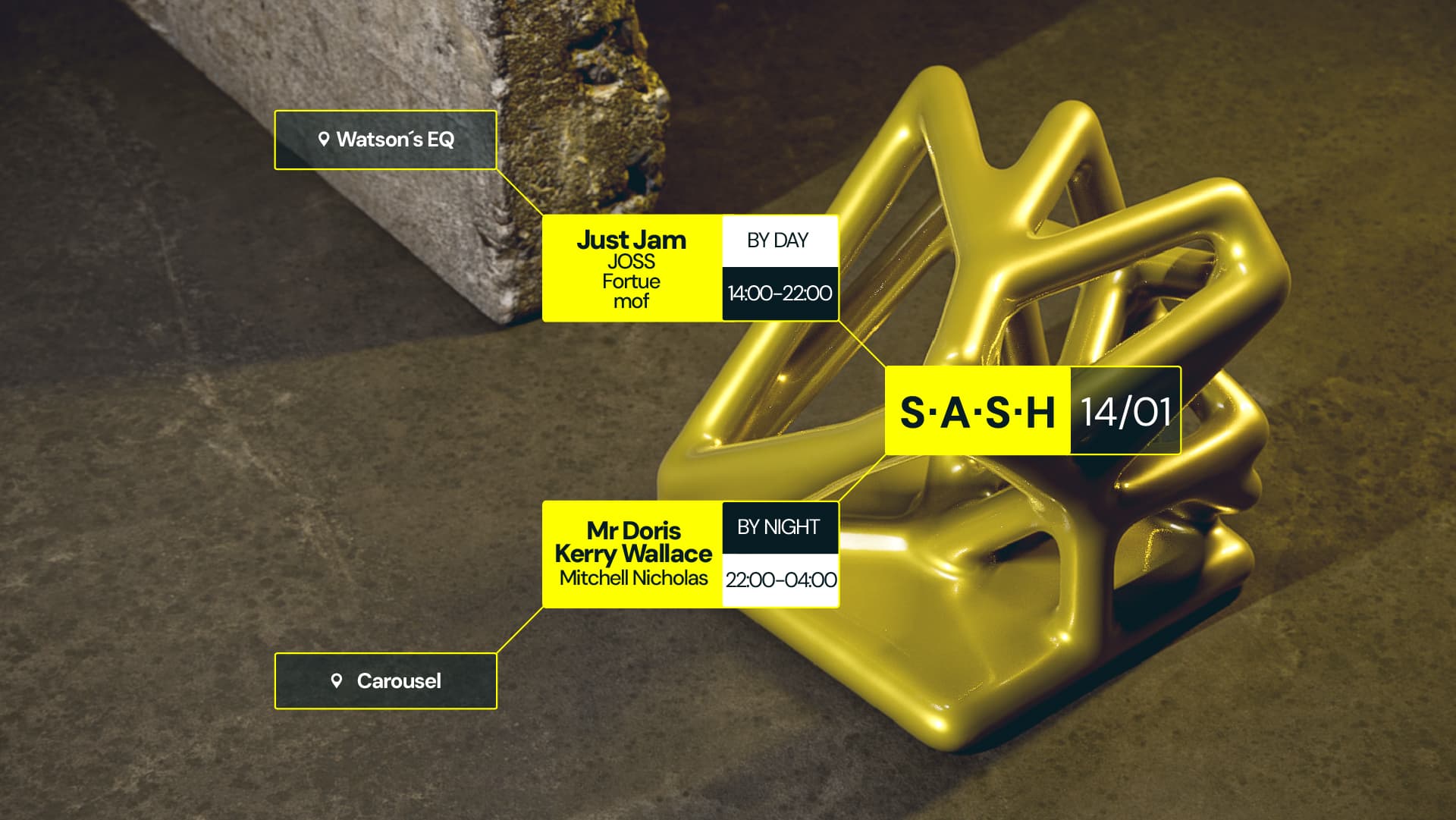 ★ S.A.S.H by Day & Night ★ Just Jam ★ Mr Doris & Kerry Wallace ★ Sunday 14th January ★