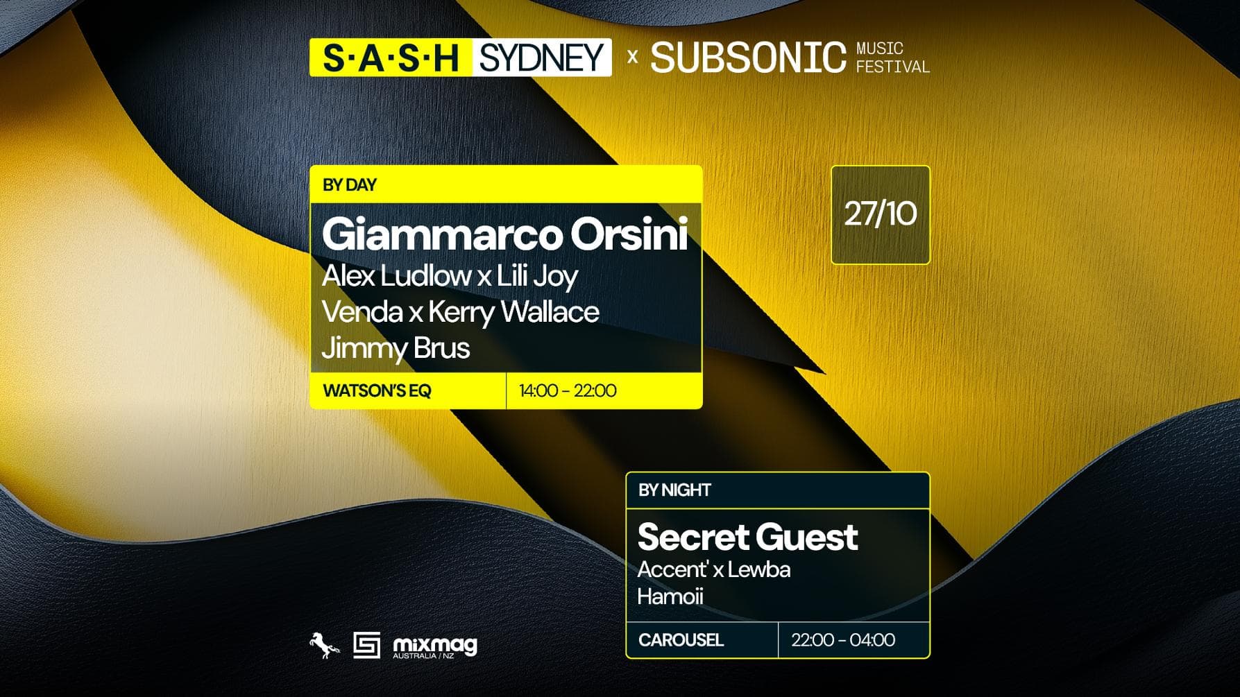★ S.A.S.H By Day & Night ★ Subsonic ft. Giammarco Orsini ★ Secret Guest ★ Sunday October 27th ★