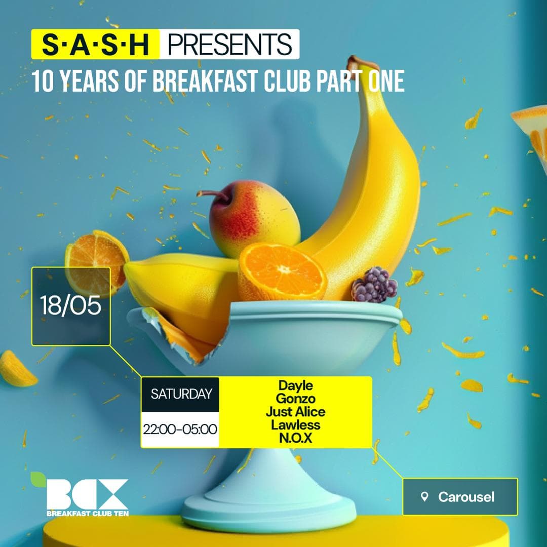 ★ S.A.S.H Presents ★ 10 Years Of Breakfast Club Part One ★ Saturday 18th May ★